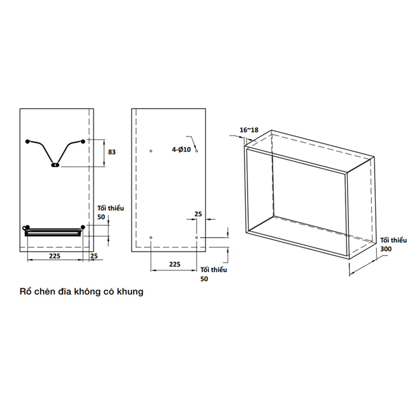 + Chiều sâu khoang tủ: ≥ 300 mm