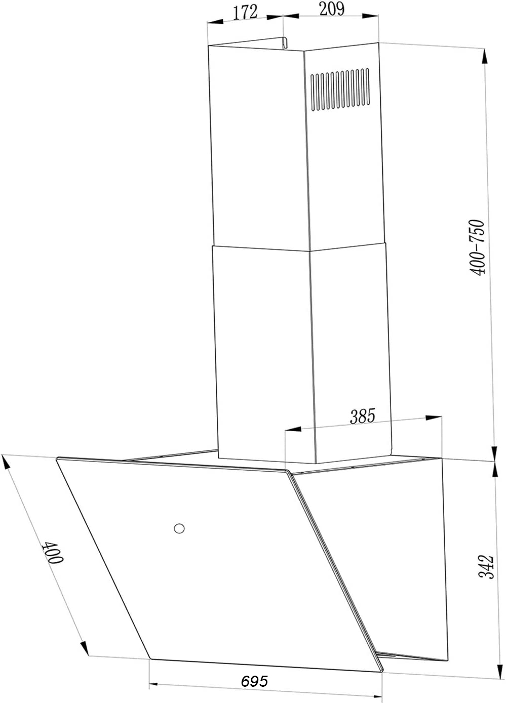 • Hút mùi kính vát, mặt kính đen